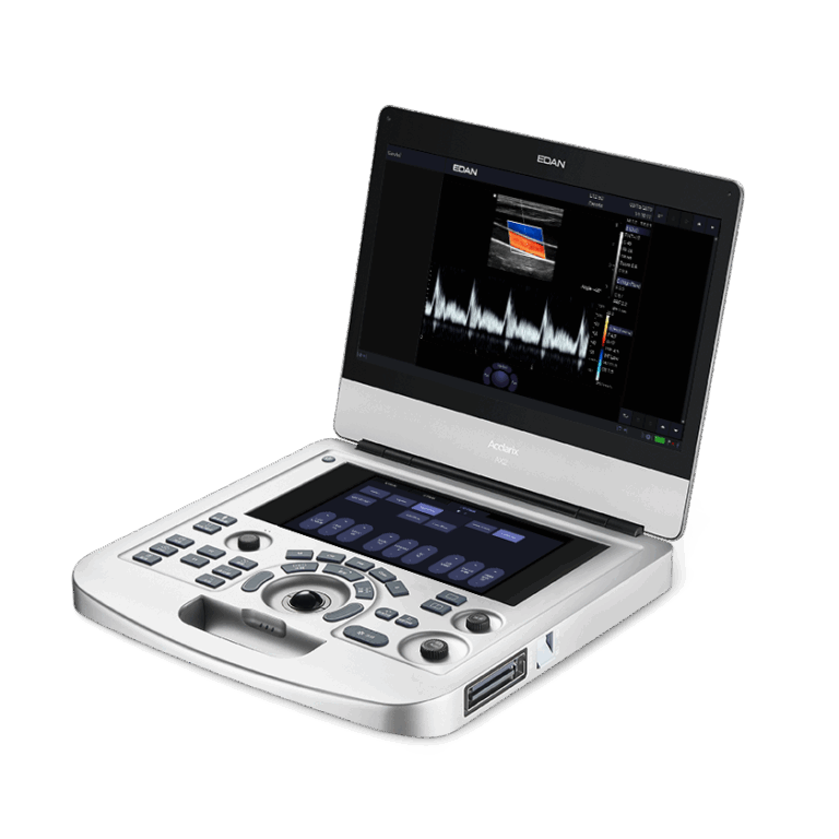 - Monitor grado medico LCD de 15.6″ con alta resolución y plegable hasta 180°.