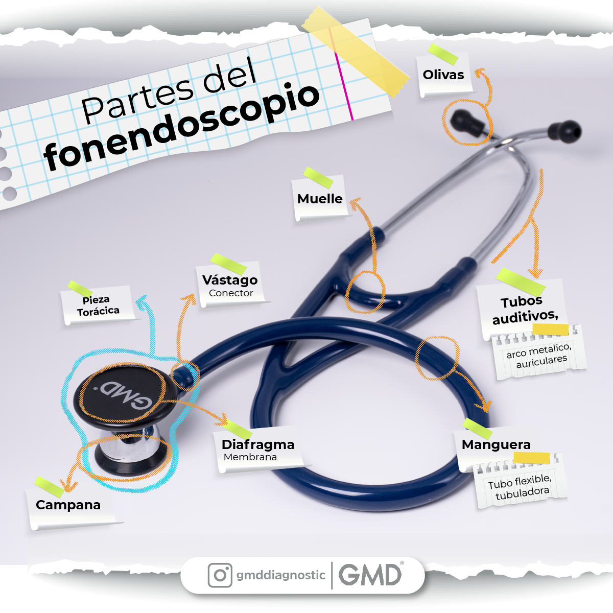 - Materiales: Tubos auriculares en cobre, campana en aleación de zinc y manguera en PVC.